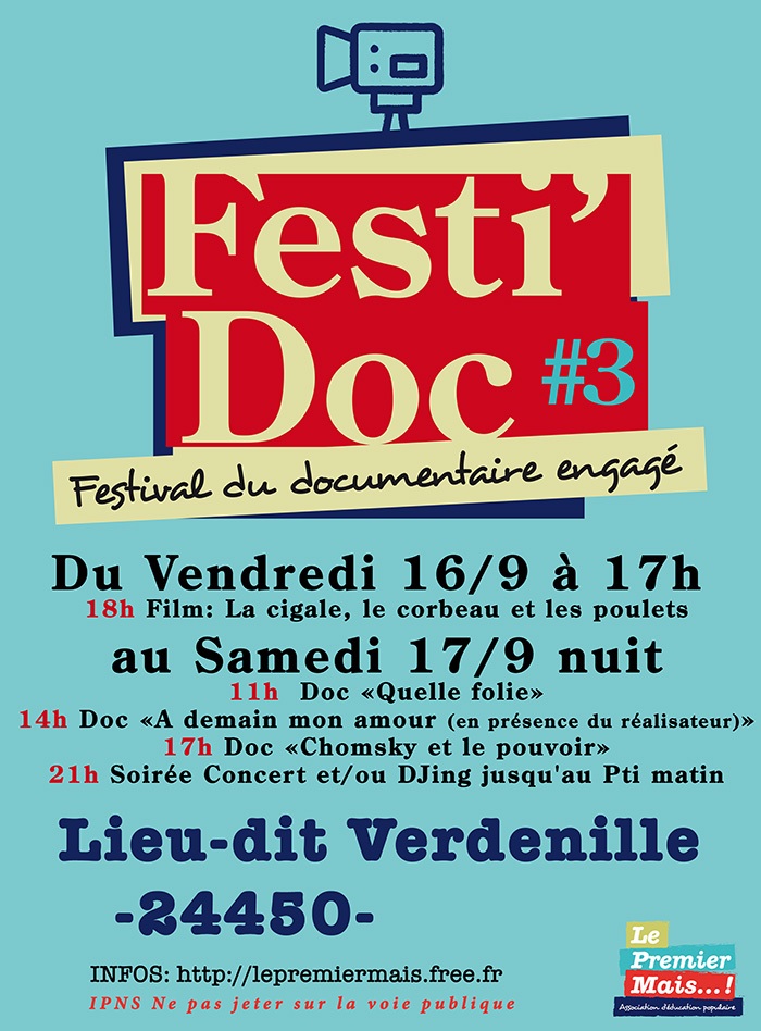 Pour la 3e édition, l'association 1er Mai pas que… vous propose son Festival du documentaire engagé les 16 et 17 septembre au Lieu-dit Verdenille Renseignementshttp://lepremiermais.free.fr/